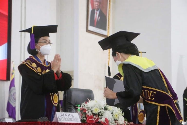 Pantauan.ID, Manado- Universitas Sam Ratulangi (Unsrat) melaksanakan Wisuda, Kamis (11/11/2020). Rektor Unsrat, Prof. Dr. Ir. Ellen Joan Kumaat, MSc, DEA dalam sambutannya mengatakan jika hal tersebut pertama dilakukan secara Luring Terbatas Sejak bulan Maret tahun 2020.